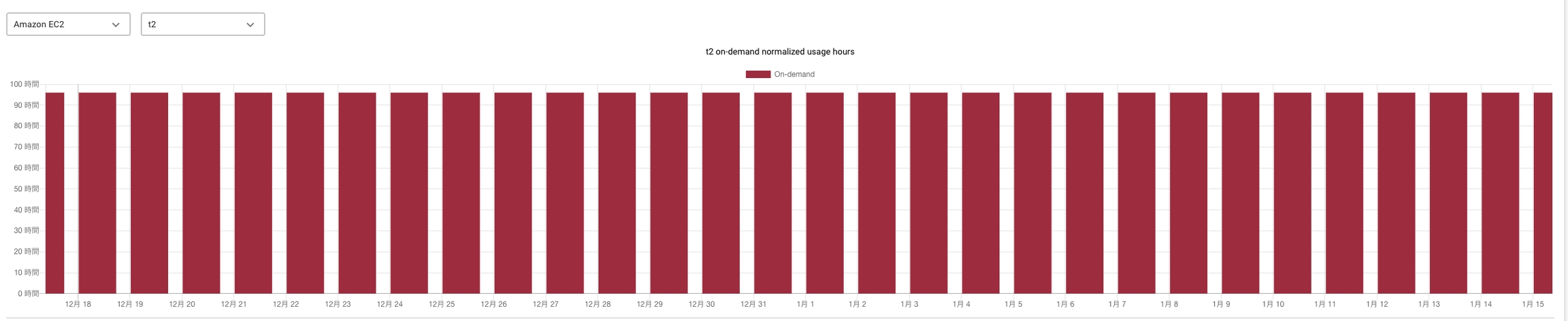 各サービス、各インスタンスタイプのオンデマンドでの利用時間が表示されます。