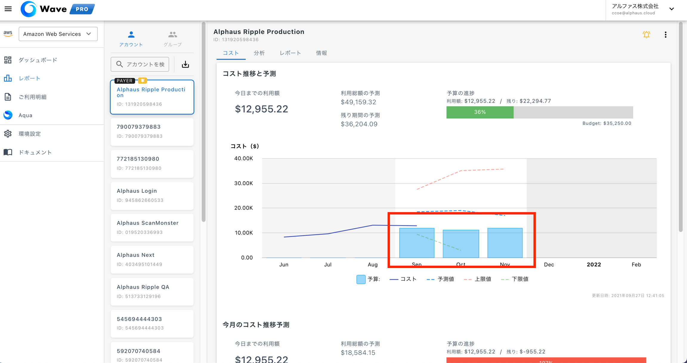 Wave Proで予算の管理と予測の表示機能が実装され、AWSアカウント単位で予算を設定し実績値と照らし合わせてコストのモニタリングができるようになりました。